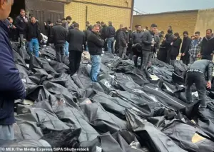 Families and residents gather at the Kahrizak Coroner’s Office confronting rows of body bags as they search for relatives killed during the regime’s violent crackdown on nationwide protests