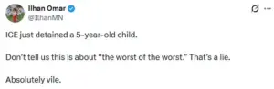 Ilhan Omar called the incident ‘absolutely vile,’ while critics of the Trump administration seized on the moment to accuse the White House of escalating its harsh immigration policies.