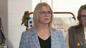Stenvik accused the Trump administration of orchestrating a ‘largest immigration operation ever,’ with nearly 3,000 agents deployed to Minnesota. ‘ICE agents have been roaming our neighborhoods, circling our schools, following our buses, coming into our parking lots and taking our children,’ she said, her voice breaking. ‘The sense of safety in our community and around our schools is shaken and our hearts are shattered.’
