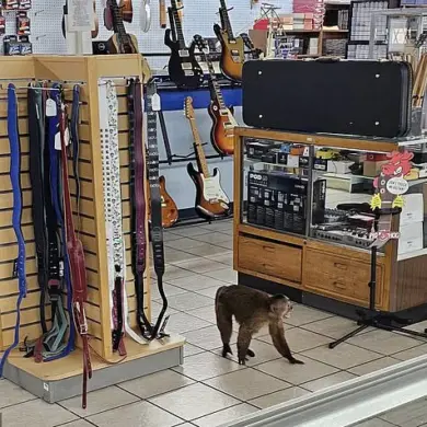 A Cinnamon Capuchin monkey caused quite a ruckus in Morristown, Tennessee, after escaping into Trade Center, a local musical instrument...